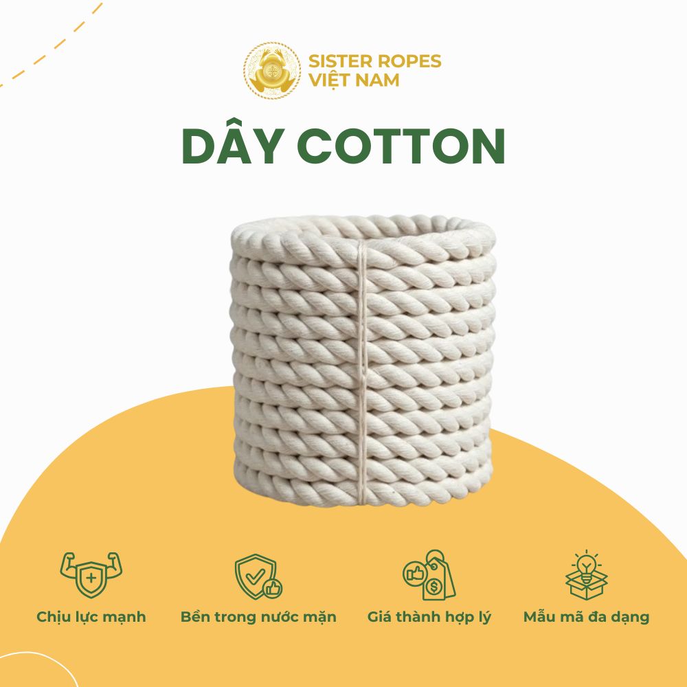Dây thừng Cotton là dòng dây tự nhiên, thân thiện môi trường, mềm mại và có tính thẩm mỹ cao – rất phù hợp cho decor trang trí, DIY và thủ công mỹ nghệ.